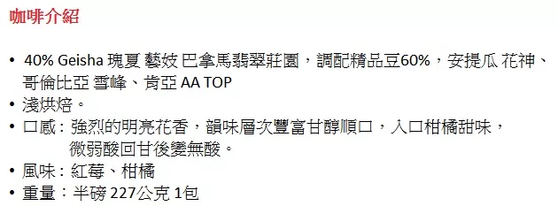 →→→→更多詳細”【中霏NANFE咖啡_製造日在出貨4天內】40% Geisha 瑰夏 (藝妓) 綜合風味 半磅 227公克 1包”介紹請點我