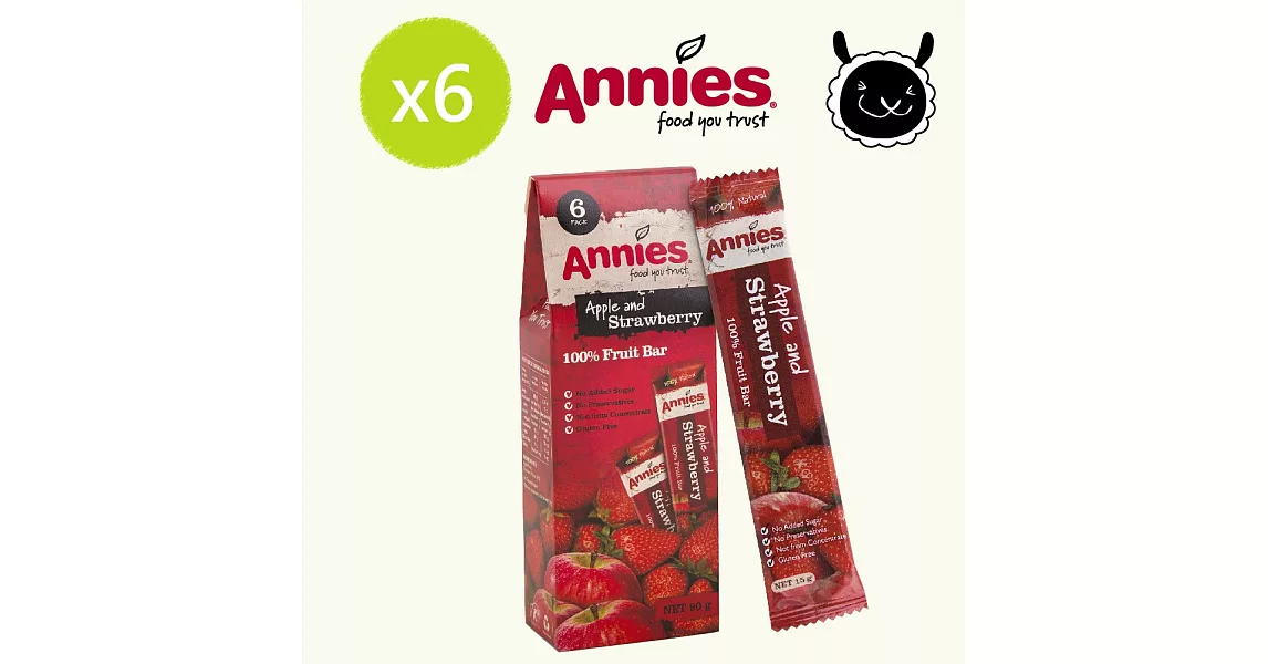 商品描述: 【壽滿趣- 紐西蘭原裝進口】Annies 全天然水果條(草莓6盒, 36片家庭裝)