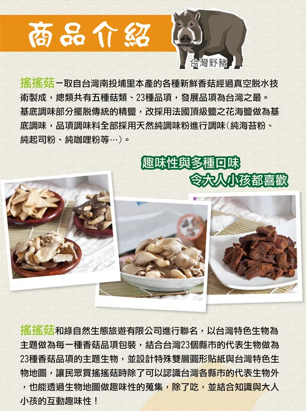 商品描述: 《搖搖菇》秀珍菇酥綜合組-五種口味(共五包)