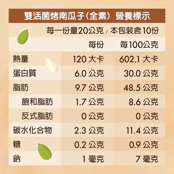 商品說明: 《可夫萊堅果之家》雙活菌烤南瓜子(200g/罐,共2罐)