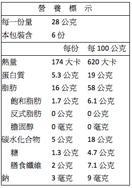 2.過敏原資訊:本產品含堅果。本生產線亦生產含牛奶製品、芝麻、含麩質之穀類、大豆及種子類的產品。