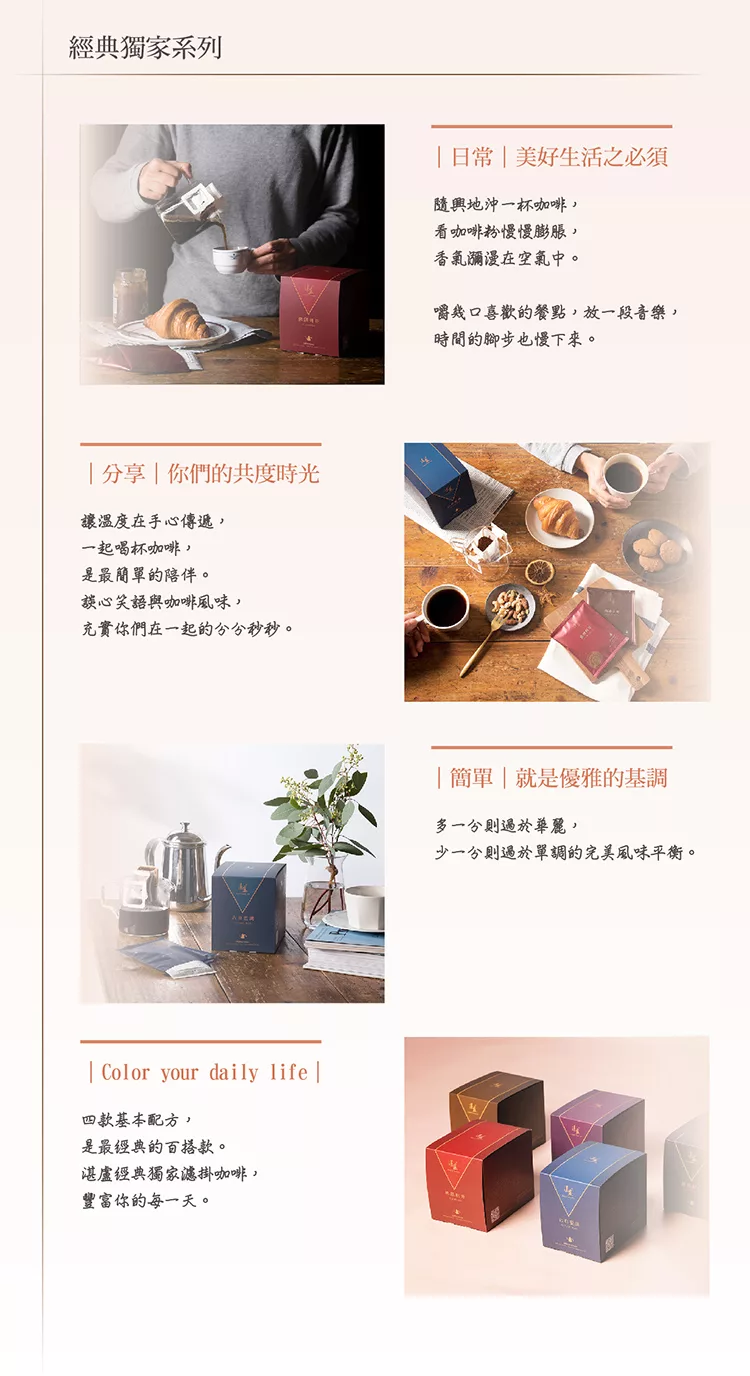 商品描述: 【湛盧咖啡】經典獨家.綜合風味 手沖精品濾掛式咖啡 (10入/盒)