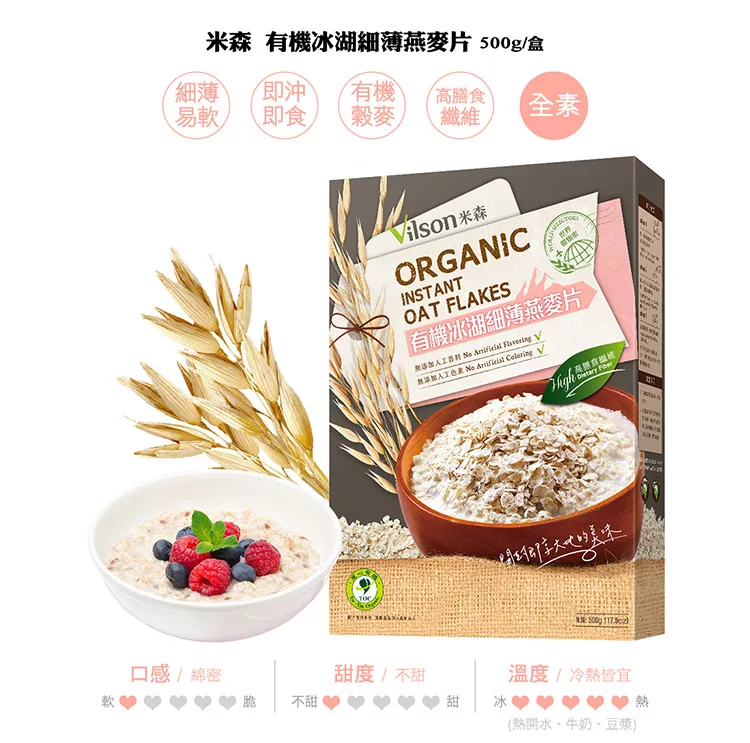 →→→→更多詳細”【米森】有機冰湖細薄燕麥片(500g/盒)”介紹請點我