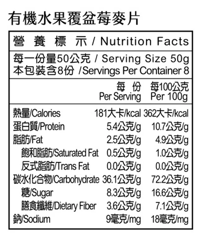 1. 品名:【米森】有機水果覆盆莓麥片