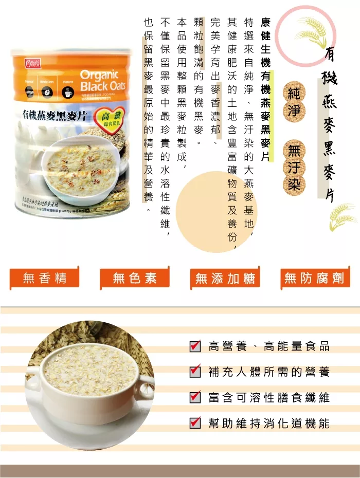 →→→→更多詳細”【康健生機】有機燕麥黑麥片(600g-罐)”介紹請點我