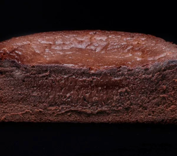 達客輕烘焙的手法,讓巧克力蛋糕擁有新鮮食材的原味,闇黑的麵糊中是滿滿的73%比利時巧克力,主廚在時間及技術的掌握下,讓半熟蛋糕充滿變化,3、5、7分熟的不同在於烤箱裡待的時間長短,您可以依照想要的口感,選擇想要的熟度。