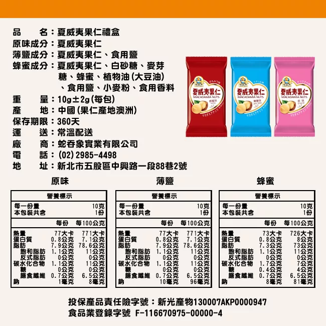 →→→→更多詳細”【幸福小胖】怡誠牌夏威夷果隨行包30包(原味/10g/包)”介紹請點我