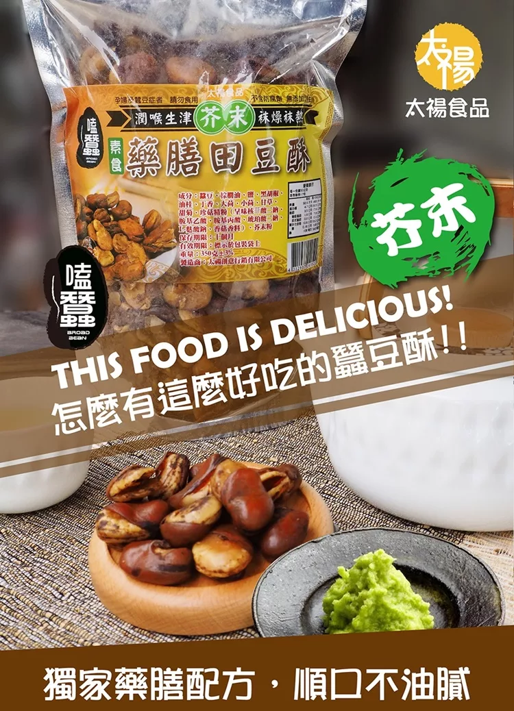 →→→→更多詳細”【太禓食品】嗑蠶藥膳田豆酥(芥末/嗆口)(350g/包)”介紹請點我