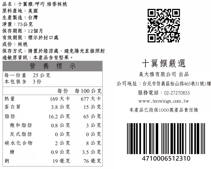 →→→→更多詳細”【十翼饌】呷巧焙香核桃 (75g)”介紹請點我