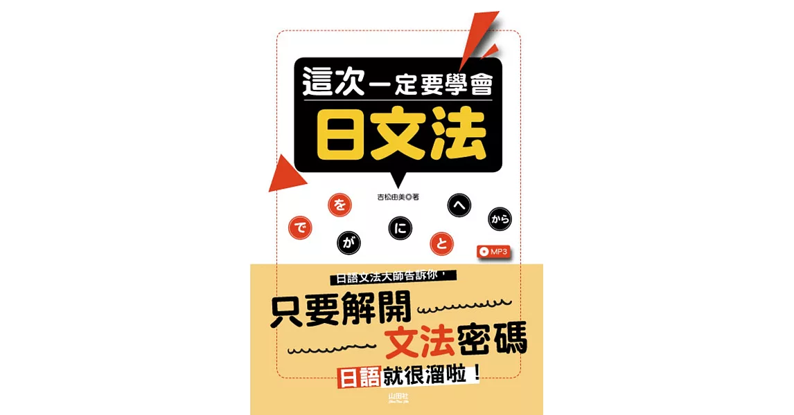 商品說明: 這次一定要學會日文法(25K+MP3) 商品描述: 書名:這次一定要學會日文法(25K+MP3),語言:繁體中文,ISBN:9789862464885,頁數:176,出版社:山田社,作者:吉松由美,出版日期:2018/01/25,類別:語言學習