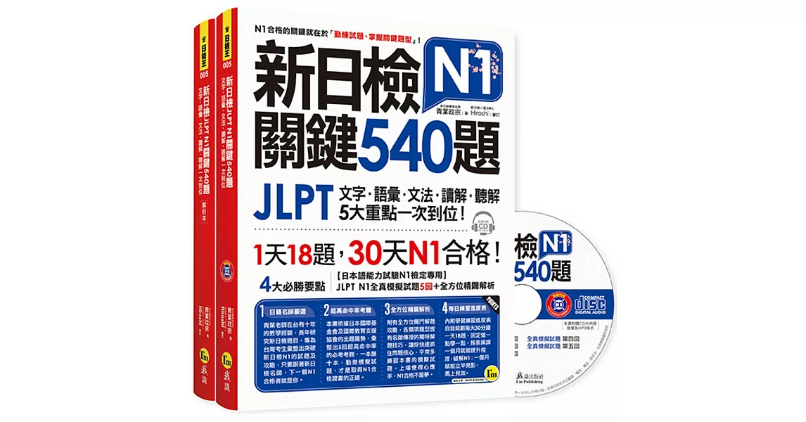 博客來-新日檢JLPT N1關鍵540題:文字、語彙、文法、讀解、聽解一次到位(5回全真模擬試題+解析兩書+CD)訂購網址: https://www.books.com.tw/exep/assp.php/87926/products/0010783097?utm_source=87926&utm_medium=ap-books&utm_content=recommend&utm_campaign=ap-202001
