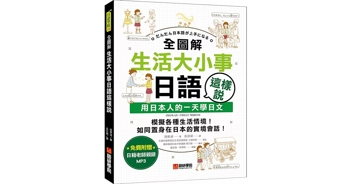 博客來-全圖解生活大小事日語這樣說:用日本人的一天學日文(附日式生活模擬MP3)訂購網址: https://www.books.com.tw/exep/assp.php/87926/products/0010786288?utm_source=87926&utm_medium=ap-books&utm_content=recommend&utm_campaign=ap-202001