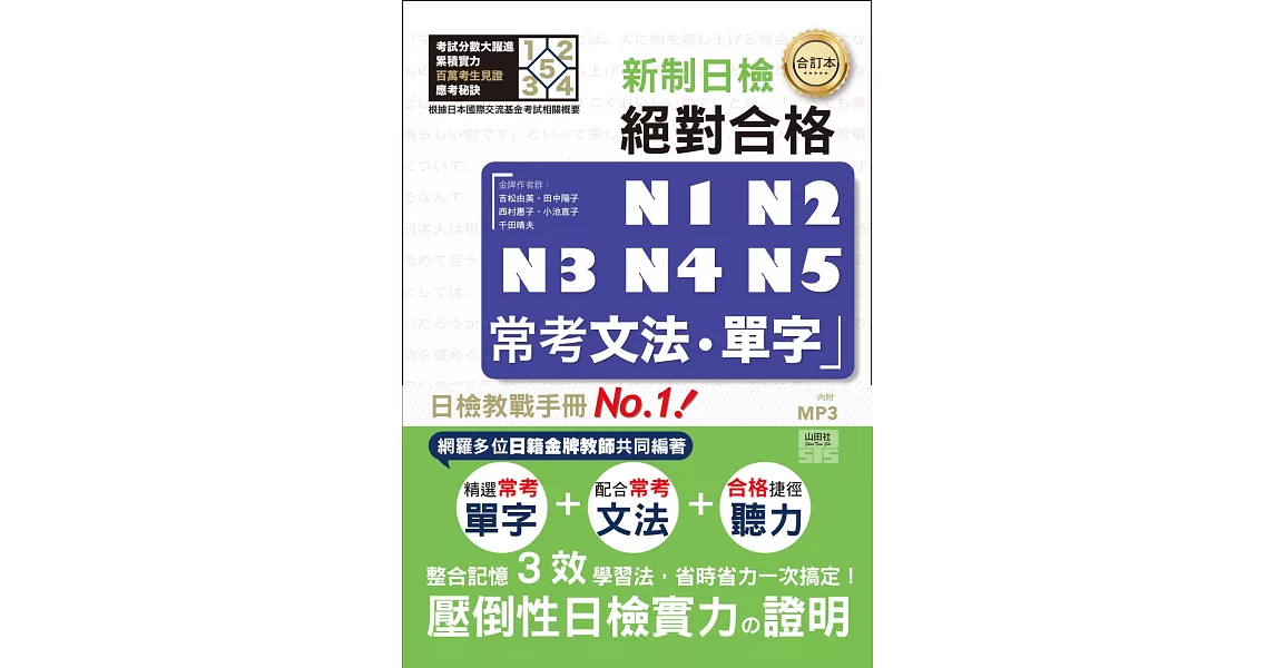 →→→→更多詳細”合訂本 新制對應 絕對合格!N1,N2,N3,N4,N5常考文法‧單字 (25K+1MP3)”介紹請點我