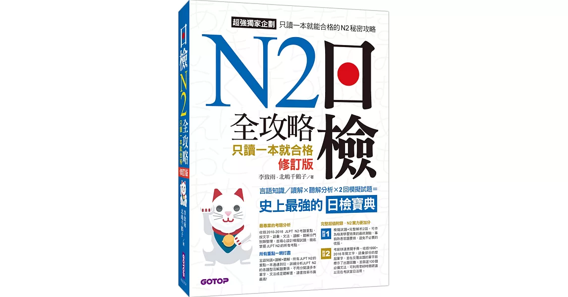 博客來-日檢N2全攻略:言語知識 讀解+聽解 只讀一本就合格(修訂版)訂購網址: https://www.books.com.tw/exep/assp.php/87926/products/0010838828?utm_source=87926&utm_medium=ap-books&utm_content=recommend&utm_campaign=ap-201906