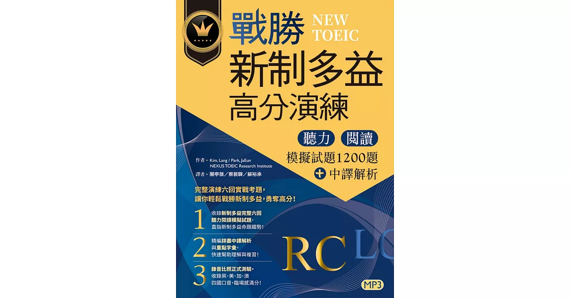 你在找博客來-戰勝新制多益高分演練:聽力閱讀模擬試題1200題+中譯解析【試題+中譯解析雙書裝】(16K+MP3)哪裡買嗎?