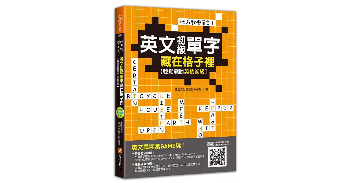 博客來-玩遊戲學單字!英文初級單字藏在格子裡:輕鬆戰勝英檢初級!(超值附贈單字填字遊戲下載即玩QR code)訂購網址: https://www.books.com.tw/exep/assp.php/87926/products/0010858323?utm_source=87926&utm_medium=ap-books&utm_content=recommend&utm_campaign=ap-201906