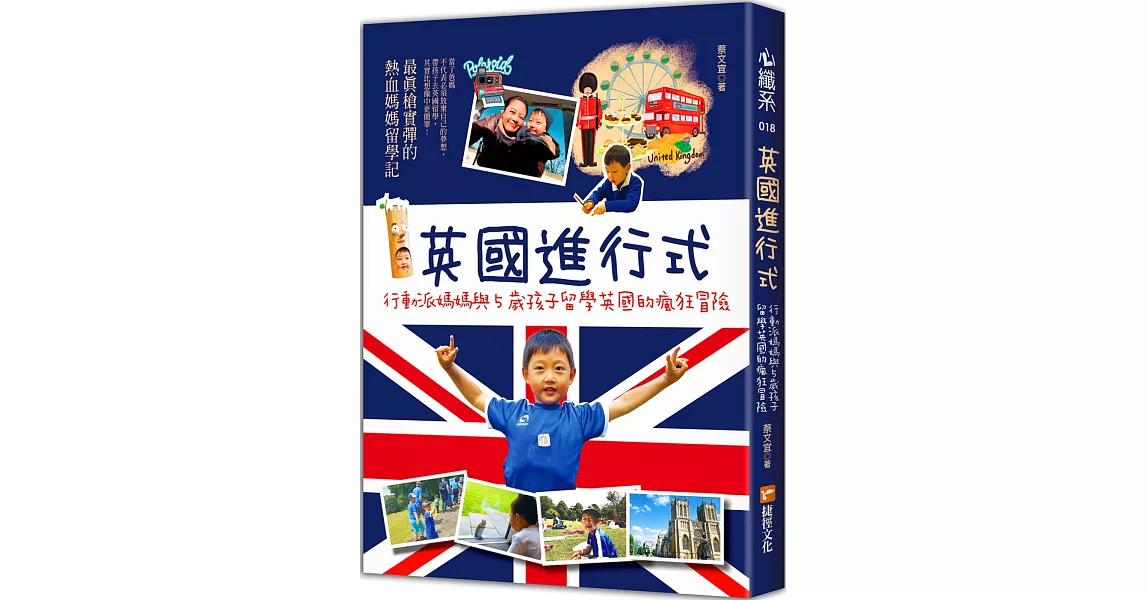 商品描述: 書名:英國進行式:行動派媽媽與5歲孩子留學英國的瘋狂冒險,語言:繁體中文,ISBN:9789865507121,頁數:238,出版社:捷徑文化,作者:蔡文宜,出版日期:2020/01/15,類別:語言學習
