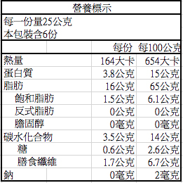 過敏原資訊: 本產品含堅果。本生產線亦生產含牛奶製品、芝麻、含麩質之穀類、大豆及種子類的產品