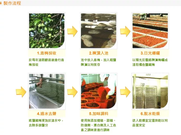 是台灣唯一通過SGS ISO9001國際品質認證的專業乾燥梅製廠,第一大梅干出口商,