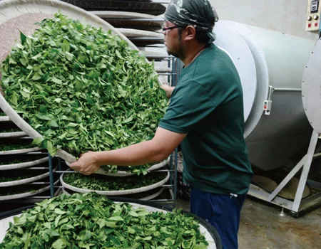 2.製程:採摘後14小時內完成炒菁前10道程序。