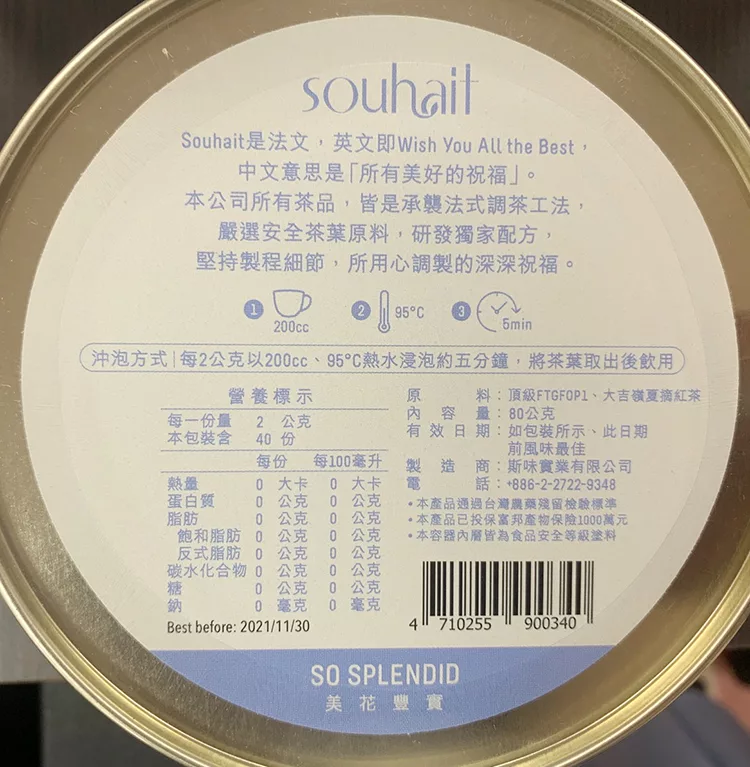 博客來-Souhait Tea清甘醇美頂級大吉嶺紅茶 茶葉 80g罐 – So Splendid 美花豐實訂購網址: https://www.books.com.tw/exep/assp.php/87926/products/N001093240?utm_source=87926&utm_medium=ap-books&utm_content=recommend&utm_campaign=ap-201912