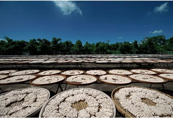 為了做出最好吃的乾拌麵,大叔們反覆的試吃過的麵條應該超過100種,最後『台南手工日曬麵』在各個評分項目中勝出。台南是個日曬充足的美食寶庫,自早年就是古法製麵曬麵的產地,透過陽光日曬風乾,不同於一般麵條需加入大量鹽巴防腐,因此,做過日光浴的手工麵沒有你看不懂名字的添加物,僅以麵粉和水手工製作,製麵過程中,最重要的就是日曬,先將手工拆成扇形的麵體一一擺放在簍空的竹篩上,經過兩天充滿正能量的強烈日曬,每兩小時要翻面一次,讓麵條都能均勻受熱,吃的苦中苦,才能蛻變成麵上麵-口感Q彈,久煮不爛,絕對好吃!