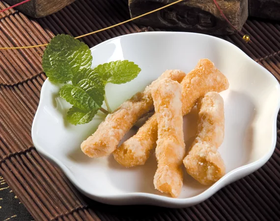 2.寸棗枝180g/包:寸棗枝為極俱傳統年節風味的一項府城小點,採用純手工製作,配合獨特的低糖製程,香味濃郁,酥脆可口,讓您吃的出府城老師傅的道地傳統製餅手藝